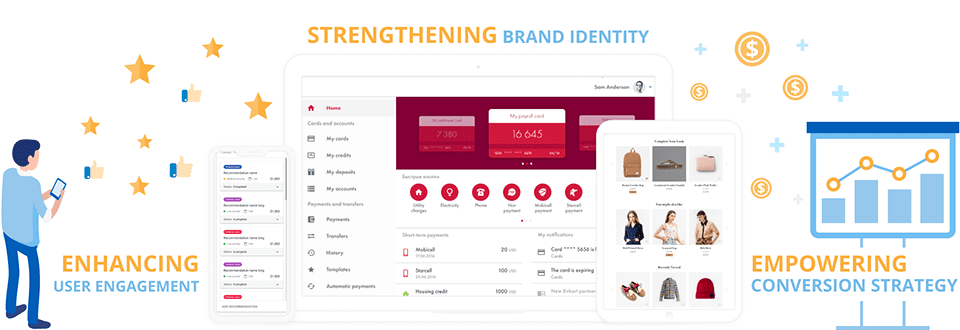 When working on a design of a website or web portal, our team always targets your specific marketing and customer service objectives. We establish productive cooperation with the stakeholders to understand your business processes and deliver a design that will empower your individual conversion strategy.