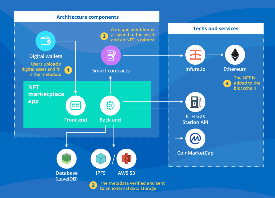 - Creating NFTs backed by unique assets, like artworks, collectibles, tickets, in-game staff, and more